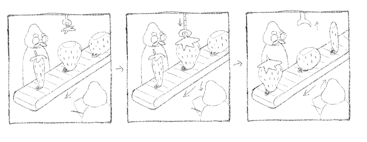 The key ideas I wanted to push here was a sense of this sterilized, artificial manufacturing of strawberries.